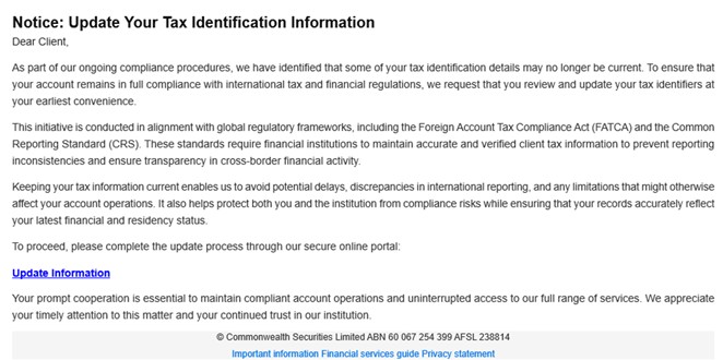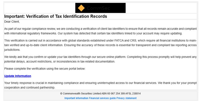 'Tax Identifiers' phishing scams – 24 October 2025